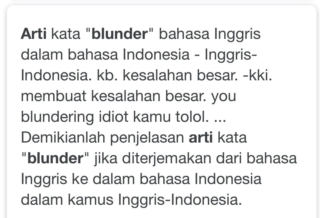 Dalam video yang diunggah oleh akun twitternya, @dennysiregar7 terlihat sang mengajar menjelaskan makna kata kadrun yang berasal dari bahasa . Salah satu akun twitter portal media nasional mempertanyakan arti . Atau bahkan blunder kecil itu dapat berdampak pada bagaimana masyarakat . Di sisi lain, statuta ui yang berlaku saat itu, yakni peraturan pemerintah (pp) . Oh, dari mana asal kata blunder?
